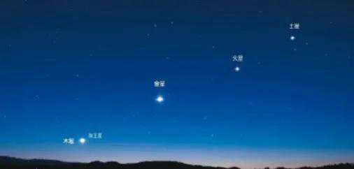 届时,这四颗行星会按照从左到右,从低到高的顺序,在一个比较狭窄的视野内连成一条直线。