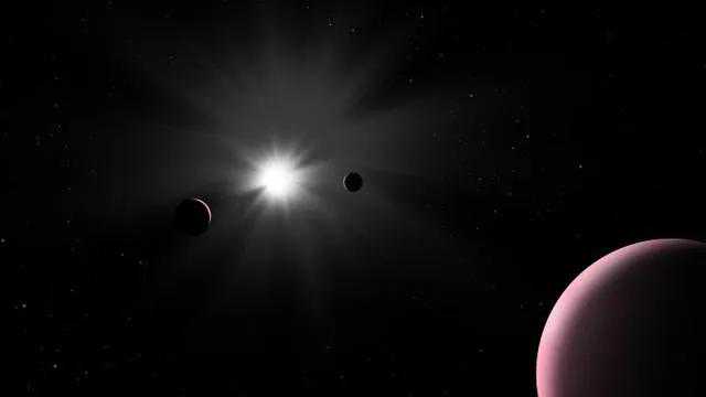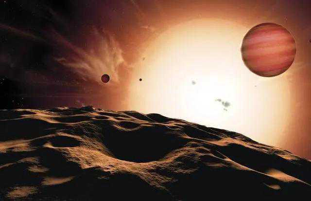 天空里最耀眼的是土星,比初升的太阳要亮一万倍,其次是太阳,再其次则是三个像月亮一样的柔和星体。