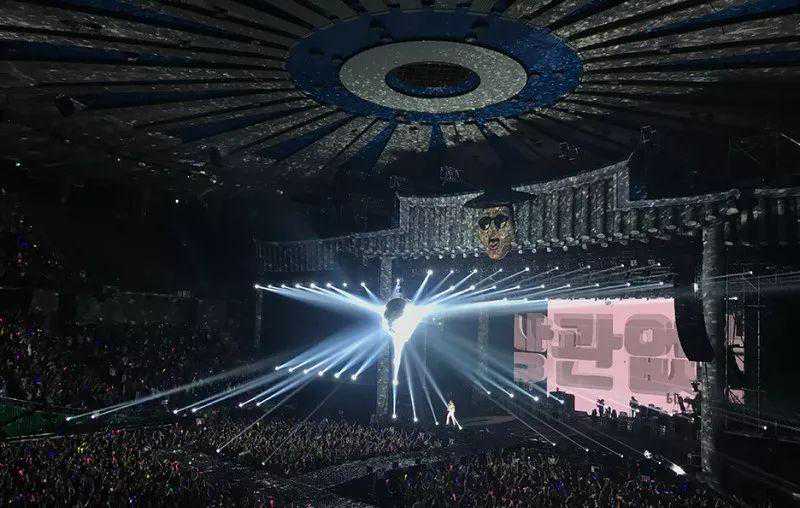 其中深入到现场观众人群的“T”型舞台,能近距离接触观众,与观众进行实时互动。特别是其中由定制升降舞台组成的部分,更是鸟叔演唱会的大杀器,不仅覆盖表演区和远景区,还带来了十分震撼的现场效果,一下就将演唱会气氛推向高潮。