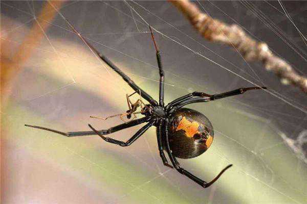 黑寡妇蜘蛛学名叫间斑寇蛛,是一种剧毒的中型蜘蛛。这种蜘蛛最有名的行为就是在交配过后,雌性蜘蛛会吃掉雄性蜘蛛,所以人们才会称呼它们为黑寡妇。其实也不是每次都吃,如果当时雌性蜘蛛正处于吃饱的状态,那么雄性蜘蛛就可能逃过一劫,不然雄性黑寡妇可打不过雌性。