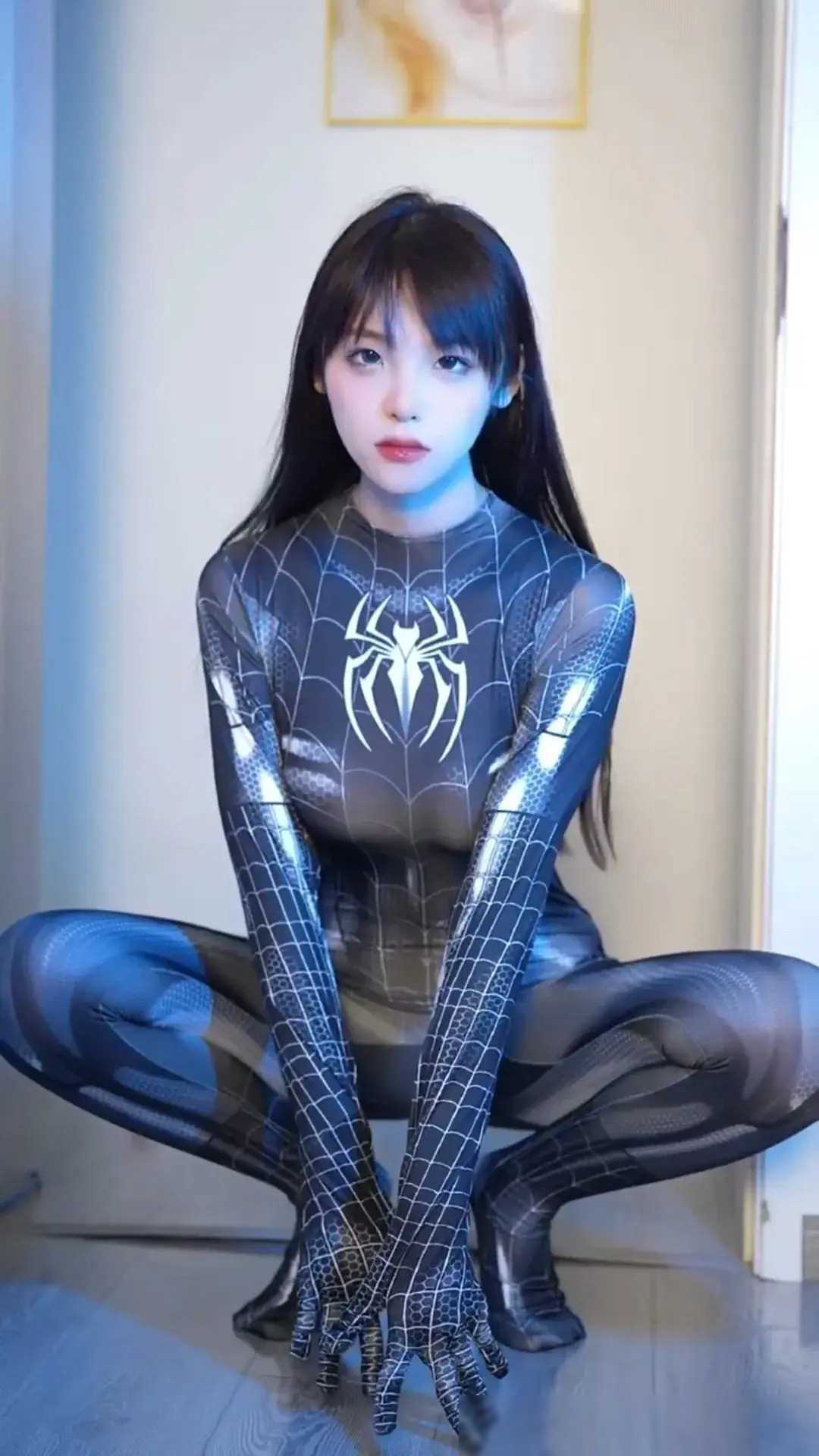 这位小姐姐首先展现了蜘蛛侠的经典红色形象,她身着紧身的战衣,胸前的醒目蜘蛛标志和线条设计让整体造型立体感十足。这不仅是对经典角色的精彩还原,也体现了她对角色特点的深刻理解和热爱。但是,她并没有止步于此,还创新地将角色扩展到了邪恶的黑色形态,通过更换战衣颜色并加入紫色蜘蛛标志,展示了角色多面性的同时,也让人感受到了cosplay的无限可能性。