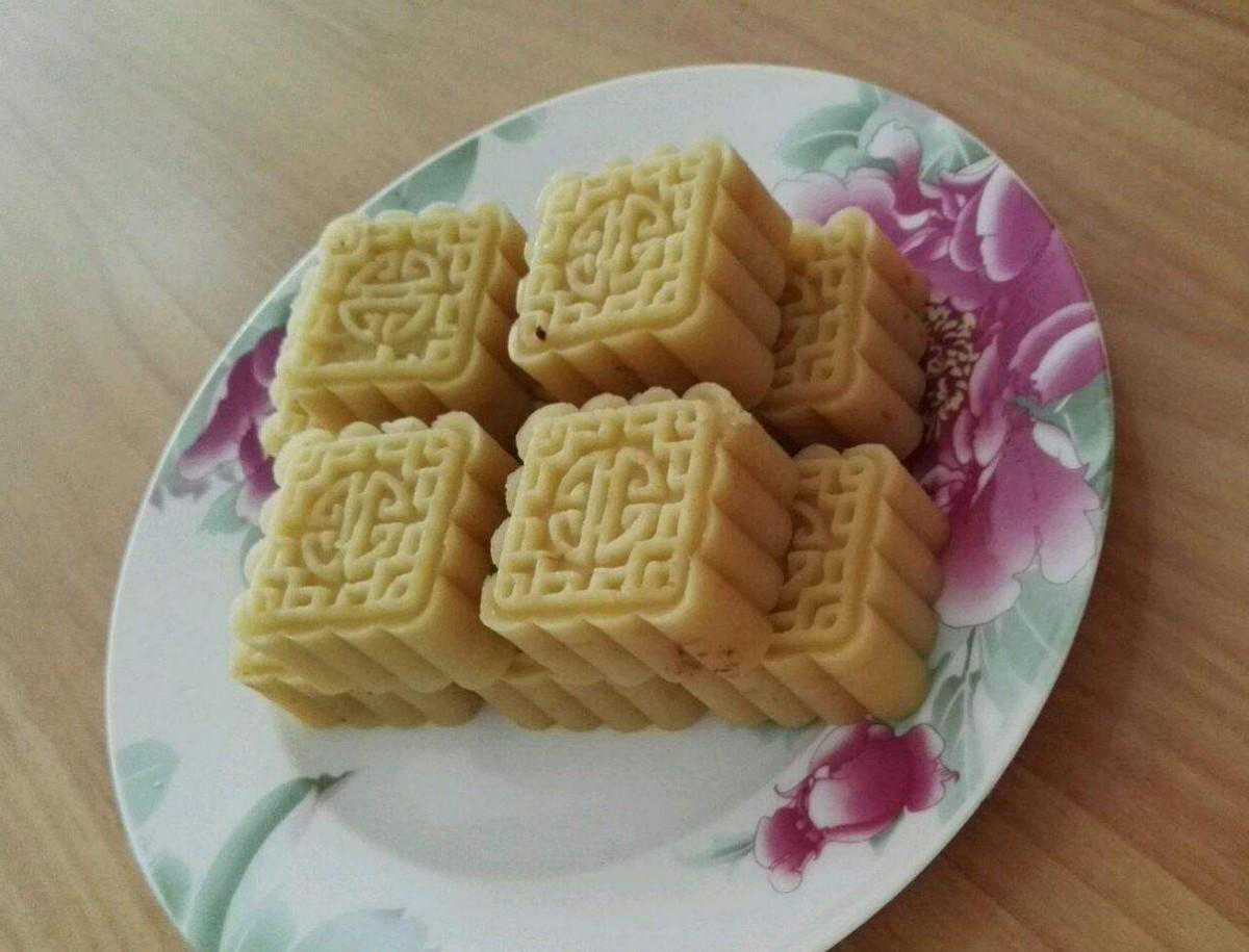 绿豆糕是小马妻子按照网上的教程第一次做的,还专门用模具印了花,看上去精致美丽,十块绿豆糕层层叠叠堆在盘中煞是好看。