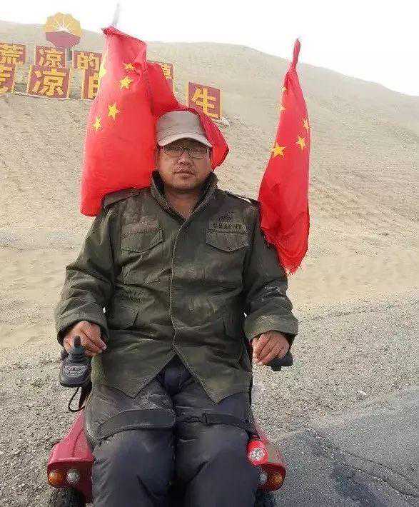 2013年6月,41岁、高位截瘫的苏建新乘坐轮椅,历时5天4夜,行程500公里,穿越塔克拉玛干大沙漠。