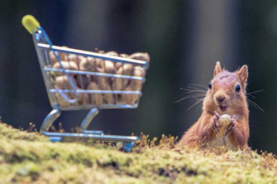2019年4月29(具体拍摄时间不详),英国邓迪,摄影师克雷格·杜根拍摄了一组松鼠推着装满花生的微型手推车的趣味照片。据悉,克雷格·杜根花了三周的时间拍摄了这组照片,这只饥饿的松鼠发现满载花生的手推车的时候表现得异常兴奋。