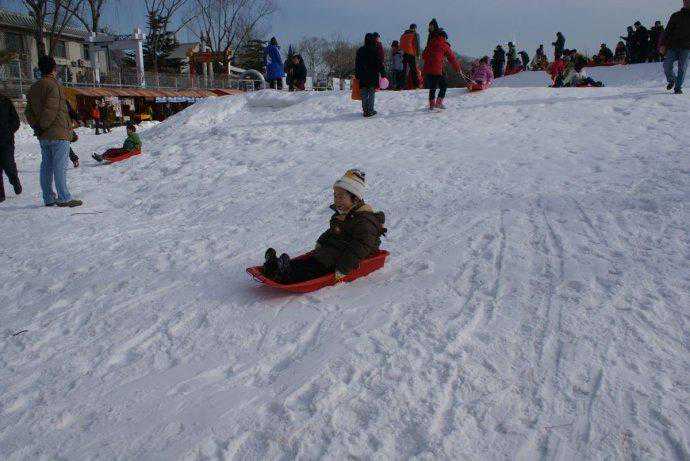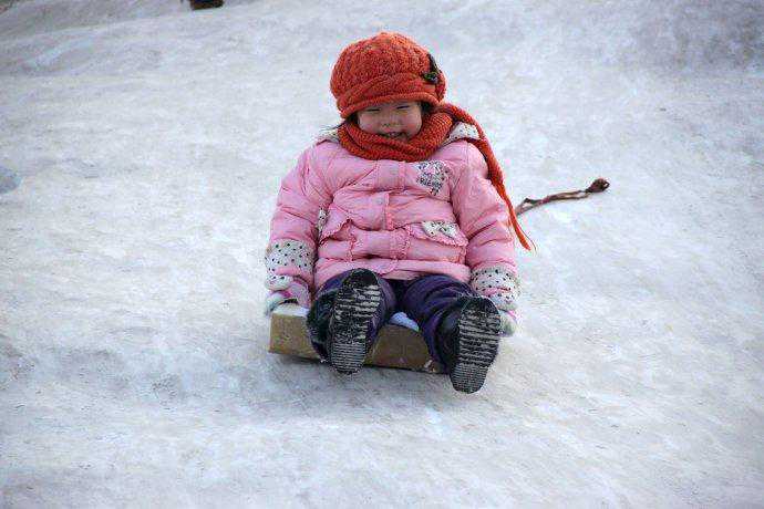 凛冽的寒风刮在脸上如刀割一般,孩童们站在高岗上一个个自觉排好队,等待着体验一滑而下的惊险和刺激。
