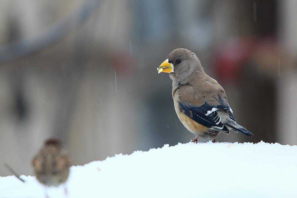 终于,三五只饥饿的麻雀飞进了院里,落在了雪地上,蹦跳着张望着,在确认四周无人后,开始接近草筛子,以及筛子下面的小麦籽。即便几天没有吃食,麻雀的警惕性依然很高,先是试探性地将头伸入草筛之内,迅速又掉转头缩回身子,如此反反复复几次尝试,麻雀的胆子才逐渐大了起来,跳进里面啄了一粒小麦籽,随即又蹦了出来。