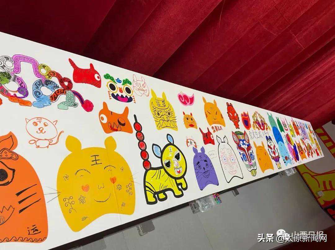 不仅有非遗传承人的作品,每一位观众也能成为虎年文创的创作者。9岁的仇柏翰参观完展览后,拿起画笔,在长卷上画了一只憨态可掬的“小老虎”。仅几天时间,这条数米的白色画卷上已经画满了形态各异、风格多样的彩色虎,均来自观众们天马行空的艺术创意。
