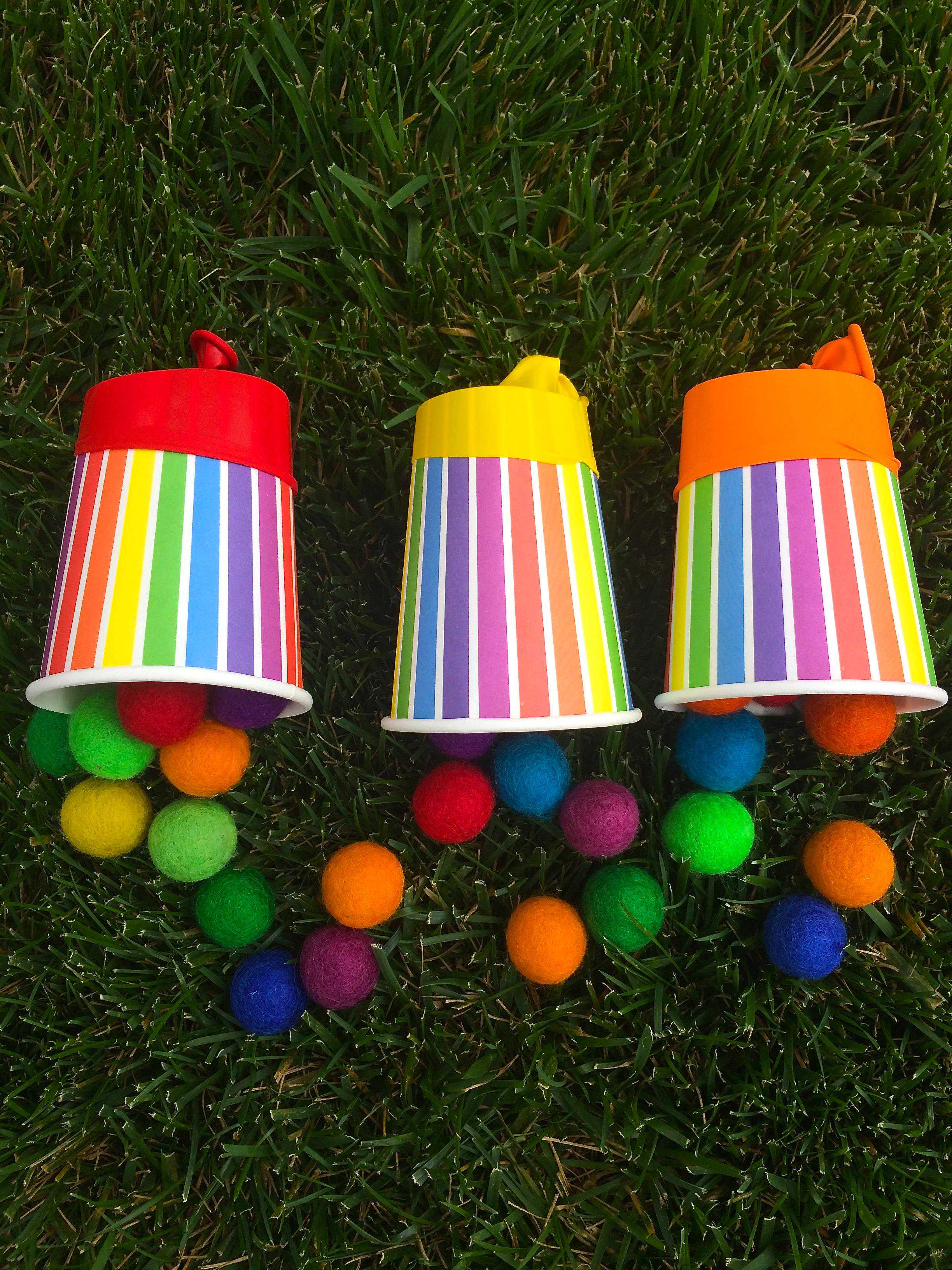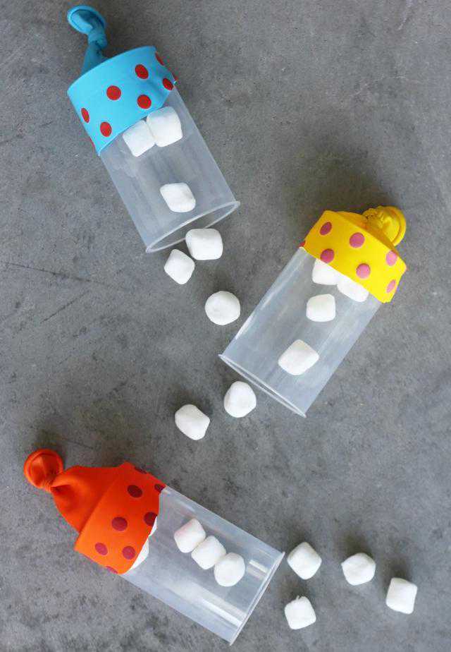 准备材料:气球,胶带,纸杯或塑料杯(建议用较厚的航空杯),泡沫球(或者棉球、绒球、乒乓球、纸团等)。