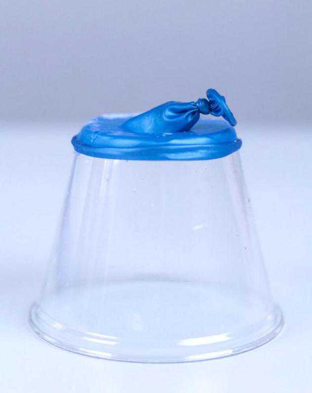 3、最后,把气球套在杯子底部,然后用胶带粘一圈以固定。