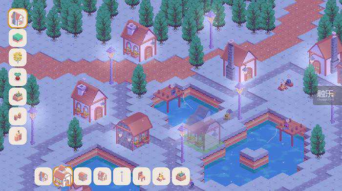 一旦你把属于自己的土地建造得井井有条,大头人们就会自动和地图中的各种建筑互动。他们的动作十分憨态可掬,仿佛真的过上了你为他们准备的田园生活——是的,他们甚至会自动种田、钓鱼,下雪的时候还会烤火和堆雪人。再加上游戏的美术风格本就非常鲜艳明丽,玩起来有点像堆“乐高”积木,配合欢快的音乐,十分休闲解压。