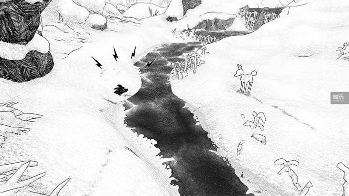 双人合作冒险游戏《白之旅》(Blanc)在两天前登陆了Steam与Switch平台。早在一个星期前的任天堂直面会上,这款画风简洁的游戏便吸引了我的目光。一头小鹿与一只小狼崽在冰天雪地里偶然结识,互相合作,共同踏上旅程。游戏的呈现方式是黑白的手绘风格,模型渲染还原了铅笔涂抹的质感,狼崽为黑,小鹿为白,白色的雪地映衬着黑色的冰河,画面构成平衡而和谐。