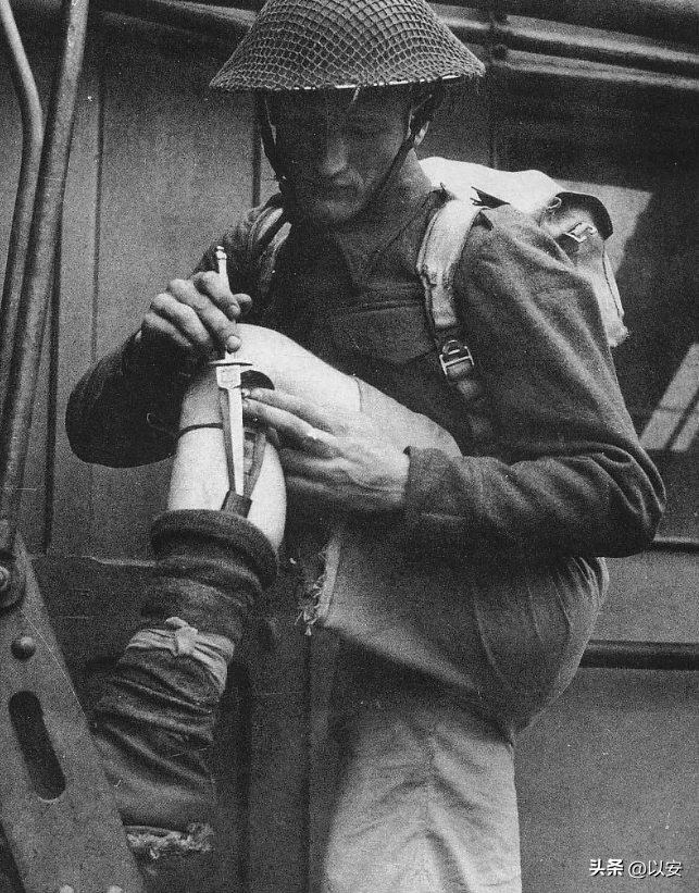 31二战时期,一位英国士兵,在出征之前,正在检查自己身上的装备。为了确保自己随时都能有一件趁手的装备,他把一把匕首塞到了自己靴子里,并且调整好了位置和高度。这样即便是没有了枪,至少可以确保,被近身之后是有战斗力的。