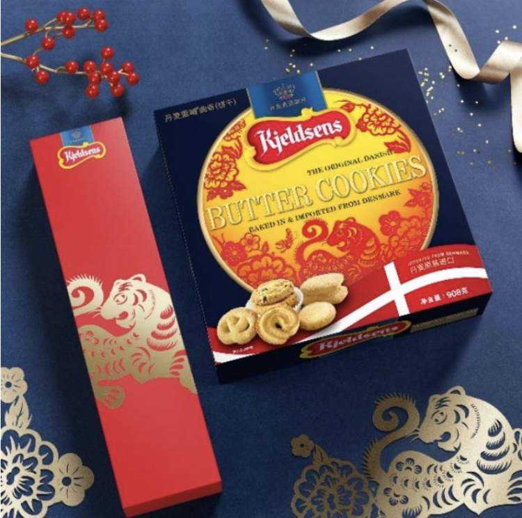 比如,上世纪90年代亮相沪上的丹麦蓝罐曲奇,今年将中式民俗剪纸元素融入礼盒包装。包装上勾勒出威风凛凛的老虎在花团紧簇下与蝴蝶嬉戏,向中国传统年俗致敬。