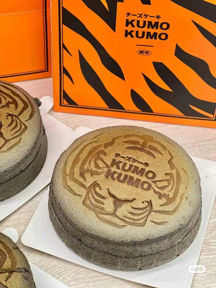 KUMOKUMO的虎纹黑蛋糕也是新近的爆款。作为上海滩有名的芝士蛋糕专门店,近期新出了虎年限定款,霸气虎纹搭配柔软的黑芝麻麻薯芝士蛋糕。