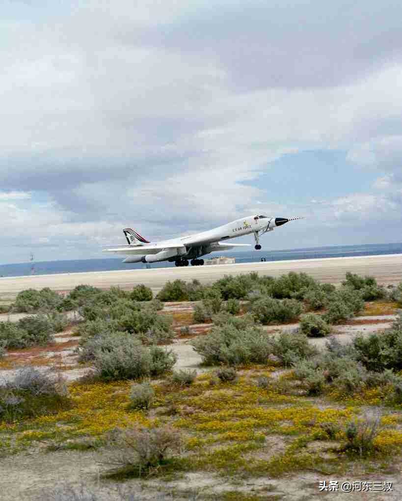 1983年4月,美国空军在爱德华兹空军基地,对当时最先进的B-1B战略轰炸机进行测试。白色涂装略显青涩的“枪骑兵”进行着各种测试,和现在大家所熟知的深色涂装看起来完全不同,有点苏联图-160“白天鹅”即视感,不过线条看起来没那么漂亮。