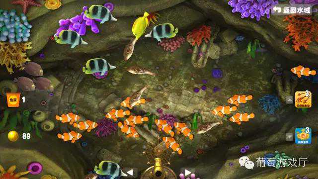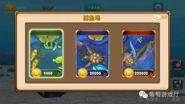 游戏中共有五个捕鱼场,不过想获得更绚丽迷人的渔场是要付出点代价滴。游戏为捕鱼和养成结合的休闲游戏,所以当你在渔场捕鱼金币不够时,可以查看你的鱼库,将捕来的鱼卖掉换得金币。也可以将捕到的鱼放到你的水域中进行喂养,但一定要注意保持水质清澈呦~