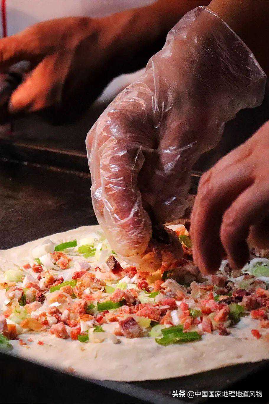 夜市风味之羊肉炕馍。摄影/视觉中国