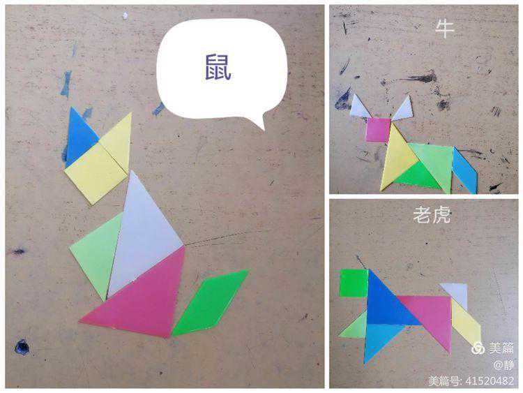 本次活动以培养同学们的数学思维和动手能力,创新意识为出发点,从准确拼图、快速拼图和创作拼图三个方面考察了同学们的数学能力和创作能力。让学生在“玩”中学习,在“玩”中开动脑筋、动手操作,极大地提高了学生“学数学”、“用数学”的意识和能力。通过这节课,学生不仅收获了成功,增强了自信,开阔了思路,感受到了学习数学的乐趣,而且丰富了学生的数学活动经验,培养了学生积极参与、合作交流的意识和能力。相信以后学生们将会拼出更多有趣、有创意的图案!