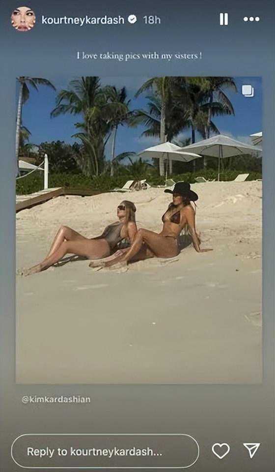 在这个阳光普照的时刻,敏锐的观众不禁注意到考特尼在背景中似乎有些疏远的存在。作为一个爱开玩笑的人,考特尼抓住了这个机会,通过重新发布照片并配上风趣的标题来调侃她的姐妹:“我喜欢和我的姐妹们拍照!”这个笑话是不言而喻的,为家庭关系增添了一丝幽默。