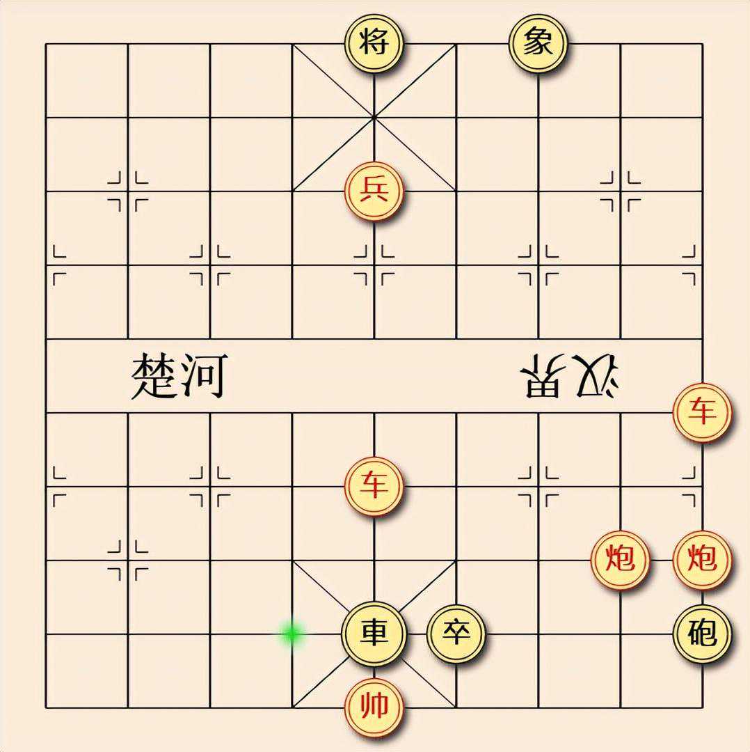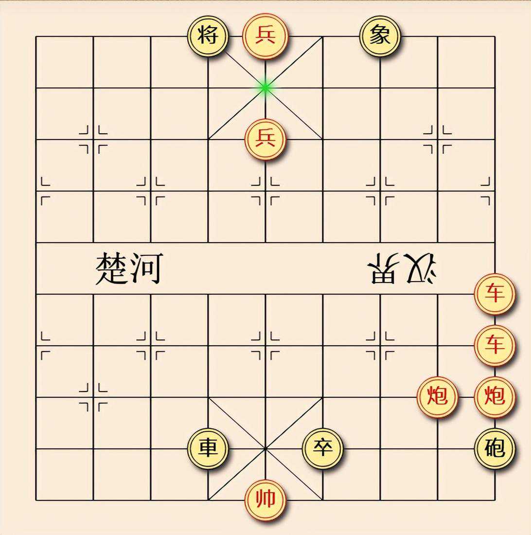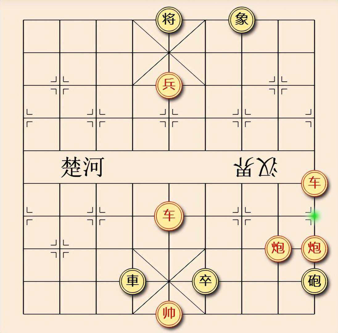 今天分享的江湖残局如下图,红子双车双炮双兵,黑子单车单炮单卒,外加一残象。红子先手,红子可兵将,可炮将,可车将。