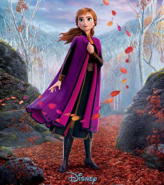 而安娜的衣服不再都是冰一样的蓝色,刚出场时甚至是妹妹一直以来穿的紫色。