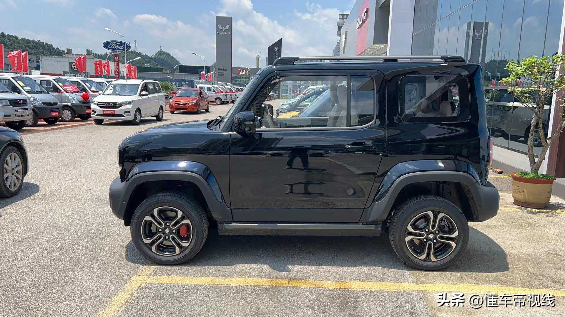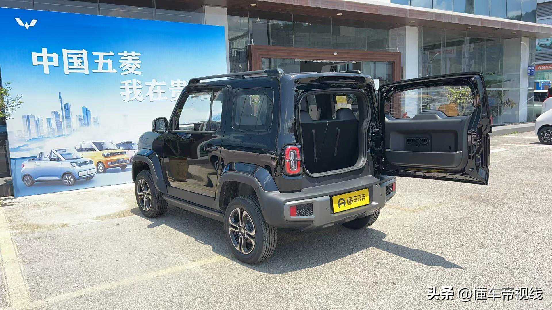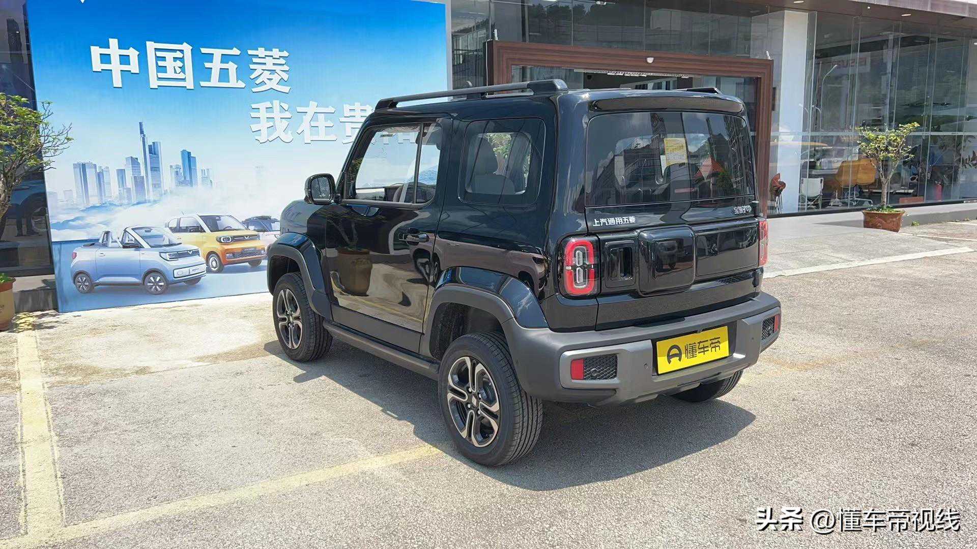 宝骏悦也采用双门四座设计,车身外轮廓具备丰富的越野车风格元素,比如外扩式防刮轮眉、侧踏板、行李架等。车辆尾部,其配备圆角矩形样式的尾灯,尾门采用侧向开启的方式并搭配方形装饰元素,进一步贴合越野主题。