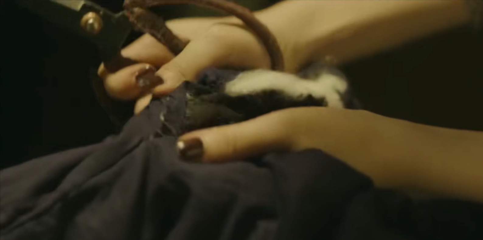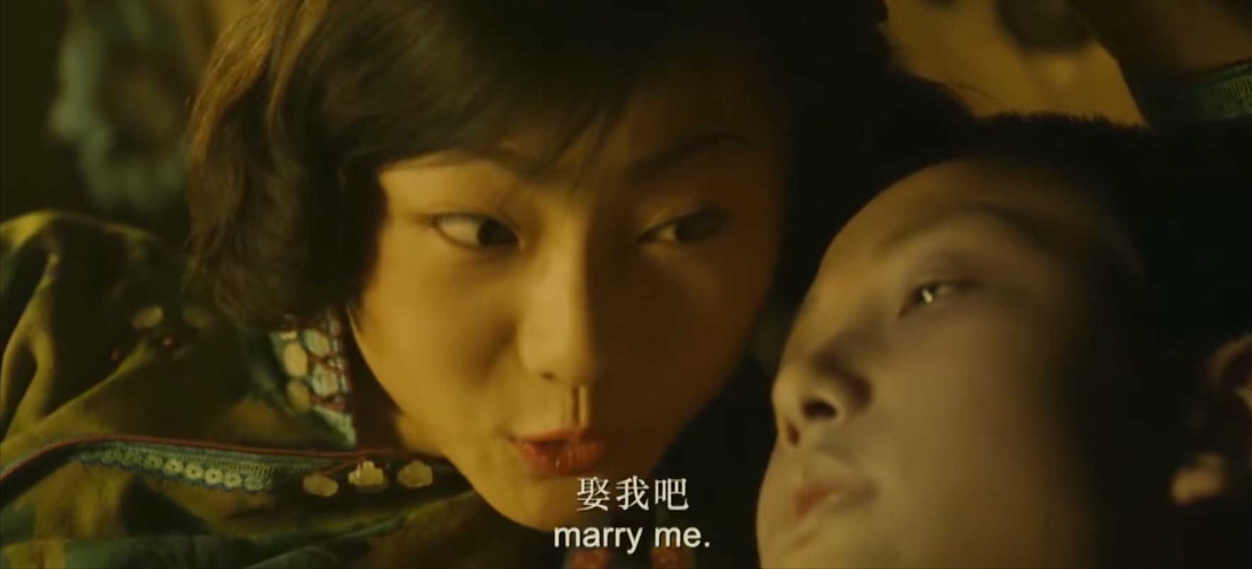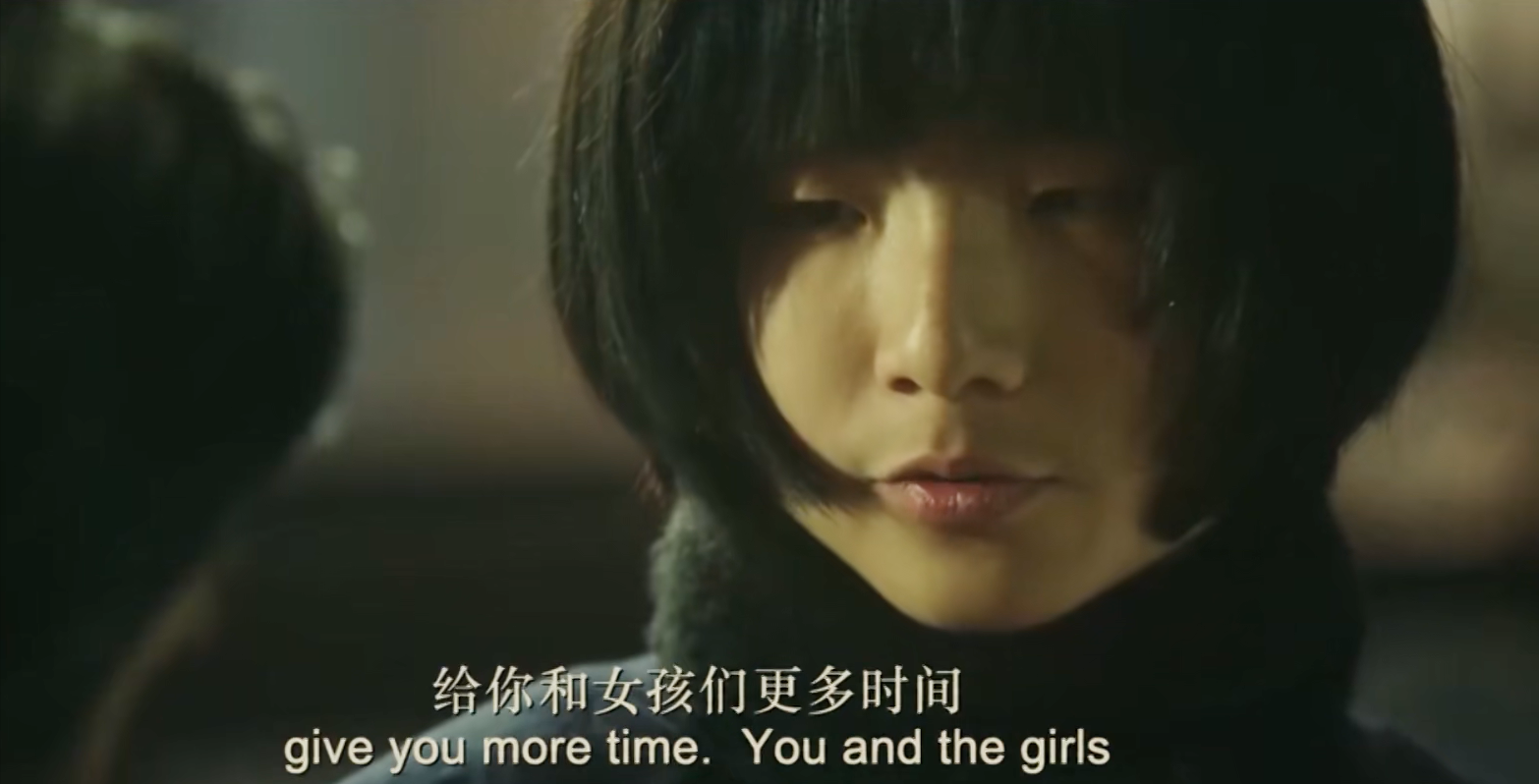 约翰不习惯给坐着的人“收拾”,所以玉墨躺了下来。玉墨漂亮的头发被剪掉了,看上去真的像一个女学生。接下来每一位歌女都剪了头发。