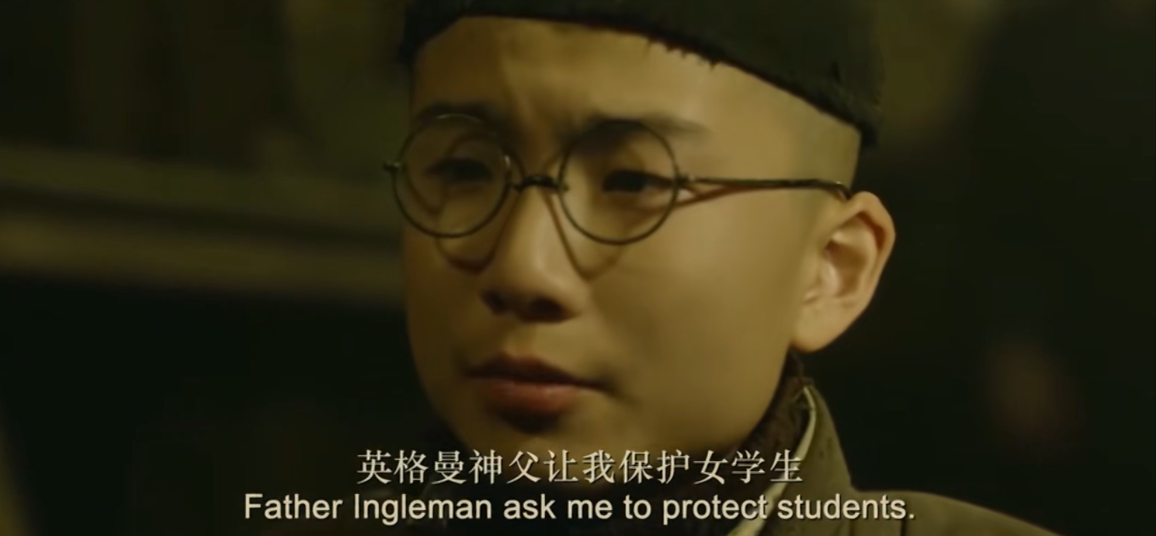 小鬼子们一听都是女学生,像饿狼一样往楼上跑,女生被他们拉扯着、拖拽着。约翰制止了他们的行为,说教堂是神圣的地方,让学生们站到了他的身后,这时的约翰,仿佛变了一个人,即使被打了,他也在奋不顾身的保护着女学生。