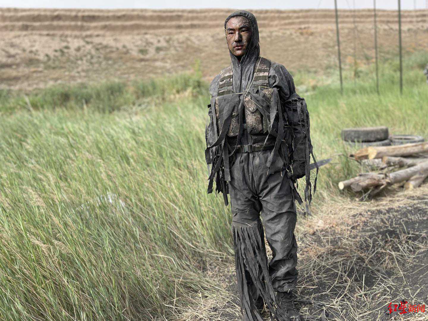 隐蔽的战士现身,此前隐蔽在身后的土里完全没人发现