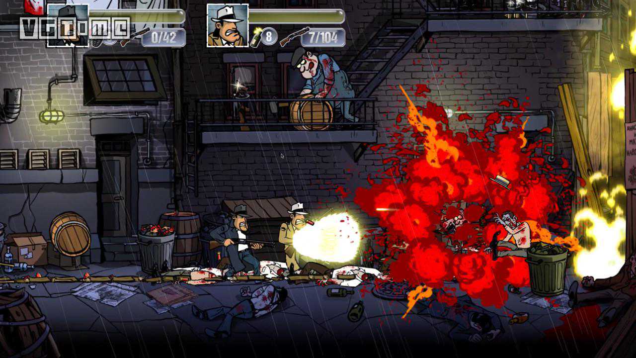 虽然在玩法上并无太多新意,但这款游戏在游戏的氛围上做到了2D游戏的极致。细腻的美漫画风中有着丰富的细节,燃烧、爆炸、断肢,各种动画和音效都十分地到位,另外配合上世纪20年代的蓝调音乐,你很容易就沉浸在游戏营造的气氛当中。