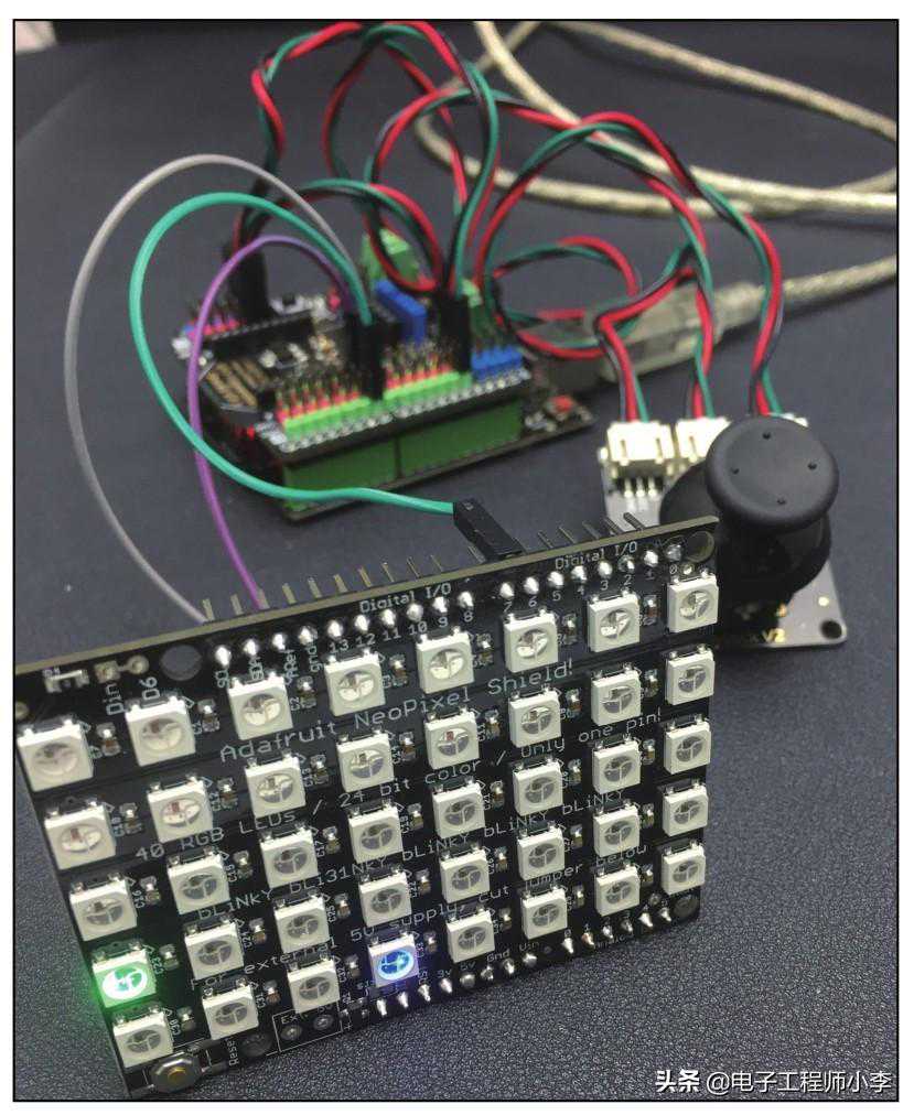 最近新拿到了一堆各式各样的型号为ws2812b的灯带,别看这种灯带的外观并没有什么惊艳之处,它其实是集控制电路与发光电路于一体的智能外控LED光源。它采用5050RGB灯珠,用户可以在0~255之间调整亮度。除了普通的灯带形式,也有环形的、矩阵形的等。在测试了很多效果之后,我面对一堆由LED形成的像素块,想到了一款经典游戏——《贪吃蛇》,却又不想千篇一律地做成经典款,于是加入了第二个玩家负责捣蛋。我借鉴了网上一个《贪吃蛇》的算法,利用Arduino、摇杆、Procesing以及电脑键盘做成了这个双人捣蛋贪吃蛇游戏。硬件清单见表5.1。