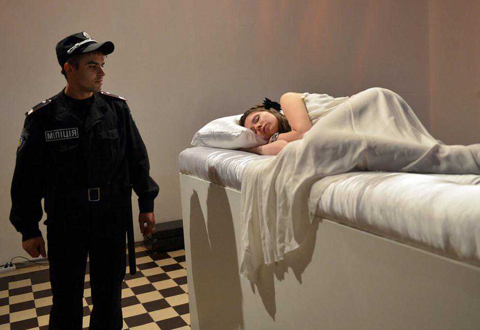 你听说过“睡美人”的传说吗?前不久,在乌克兰举行了一次别开生面的展览—“睡美人”展览。由5名妙龄美女躺在展馆里,让前来参展人员可以轻吻她。