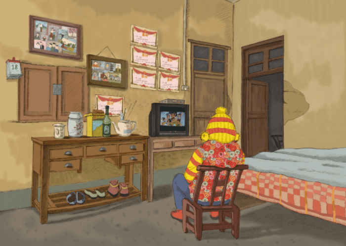 小学到高中,奶奶习惯性早起给我们煮鸡蛋煮面。一吃饱就把折得整整齐齐的红领巾给弟弟系上,把纸巾放弟弟口袋。奶奶在阳台摘了药草煮的凉茶,用大水勺盛好等我们放学回来喝。小时候房子小,一个房间放两张床,我和姐姐跟奶奶睡一个房间。跟姐姐在床上唱歌吵闹,奶奶抱怨我们太大声;周末和奶奶在床上玩纸牌;每逢七夕,奶奶都会去接雨水装好放床边,说这样对身体好;奶奶最喜欢看《超级五星战队》、《少年梁祝》,一边看一边骂马文才有多坏;奶奶经常靠在窗边,看着对面的房子说:你看这家阿嫲又搬凳子出来乘凉了