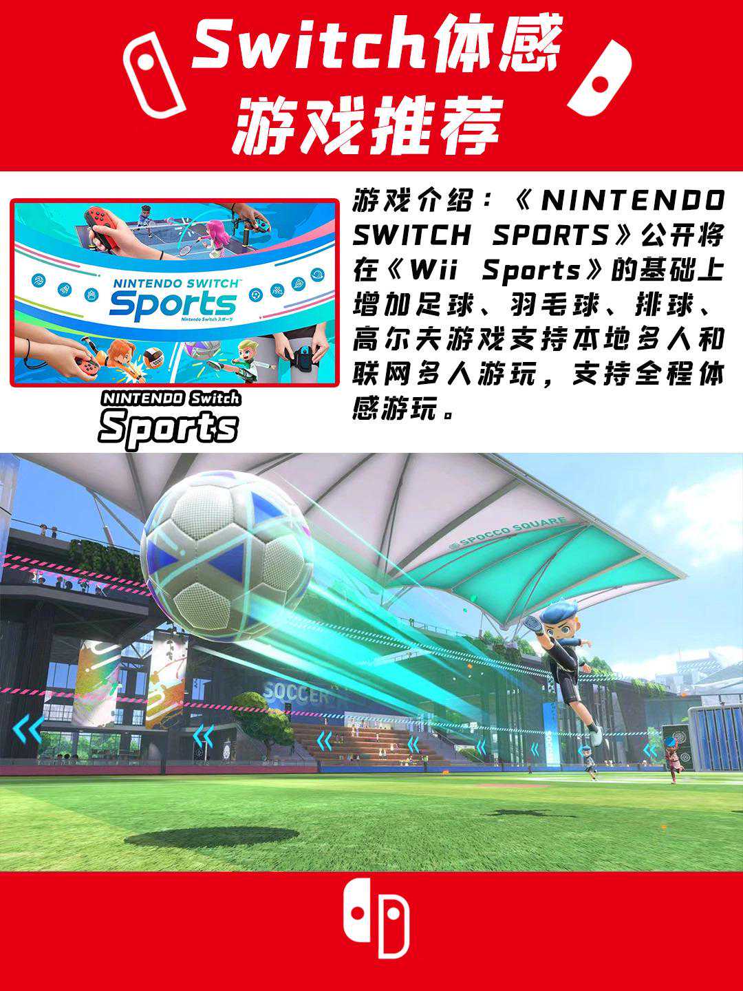 游戏介绍:《NINTENOOSWITCHSPORTS》公开将在《WiiSports》的基础上增加足球、羽毛球、排球、高尔夫游戏支持本地多人和联网多人游玩,支持全程体感游玩。