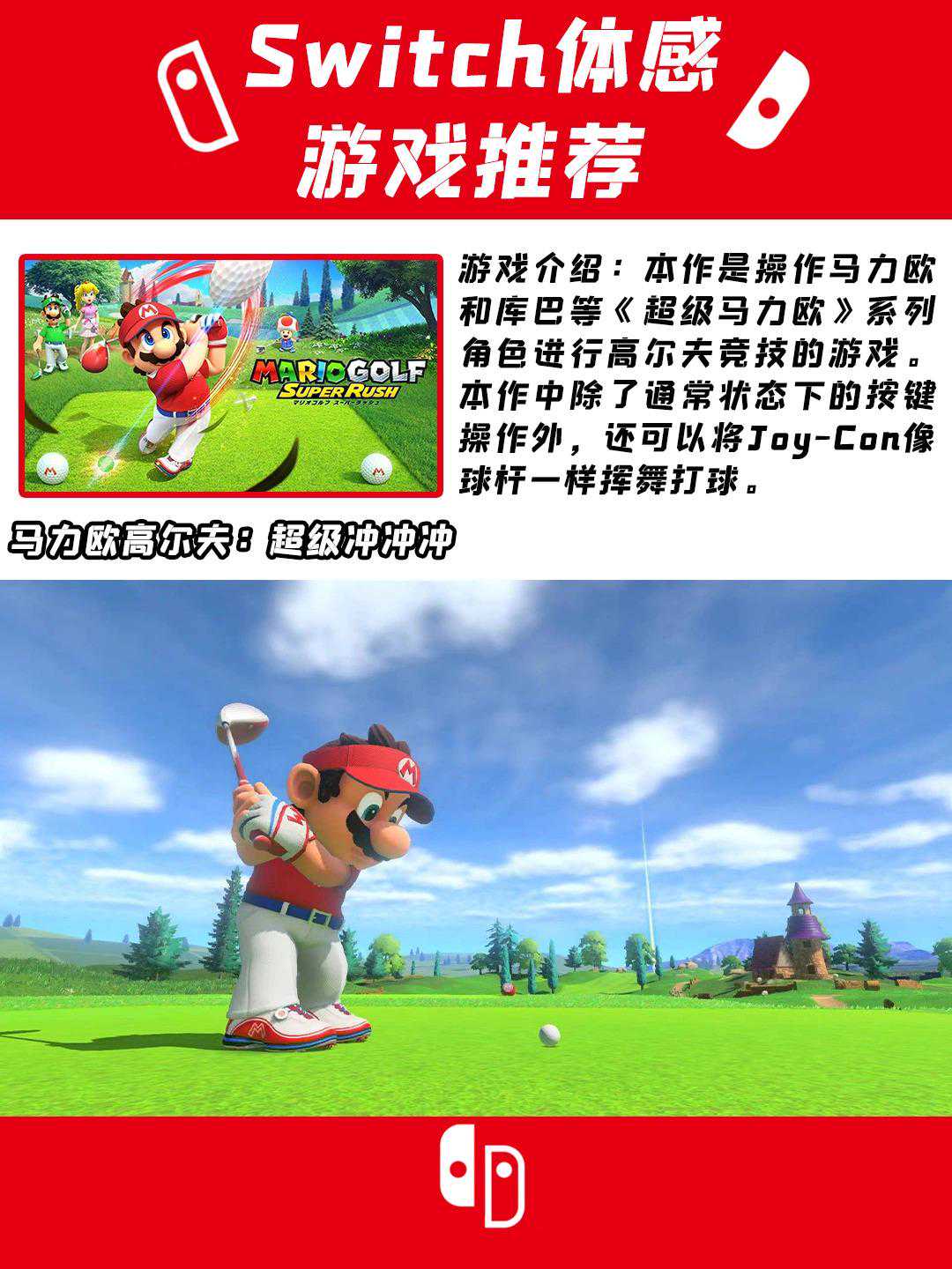 游戏介绍:本作是操作马力欧和库巴等《超级马力欧》系列角色进行高尔夫竞技的游戏。本作中除了通常状态下的按键操作外,还可以将Joy-Con像球杆一样挥舞打球。