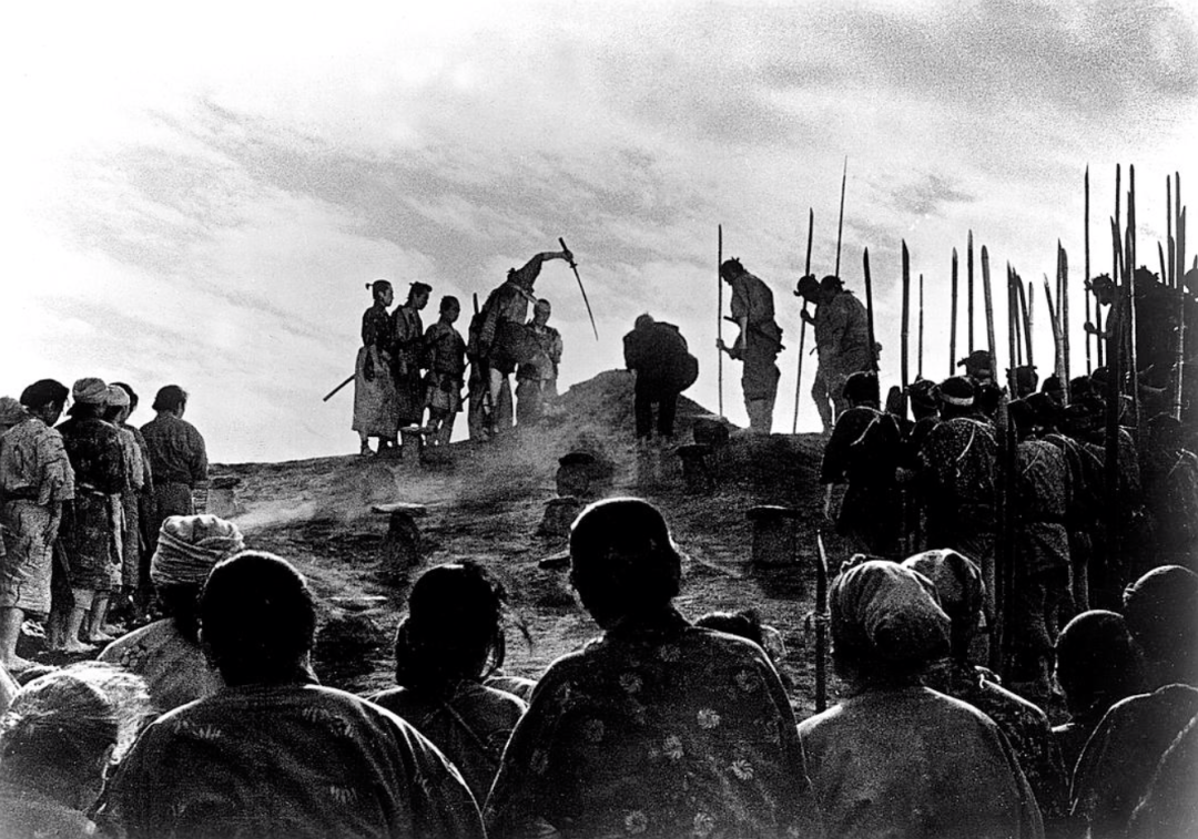 《七武士》中的村民们面朝黄土,背朝天,汗水摔在地上成八瓣。