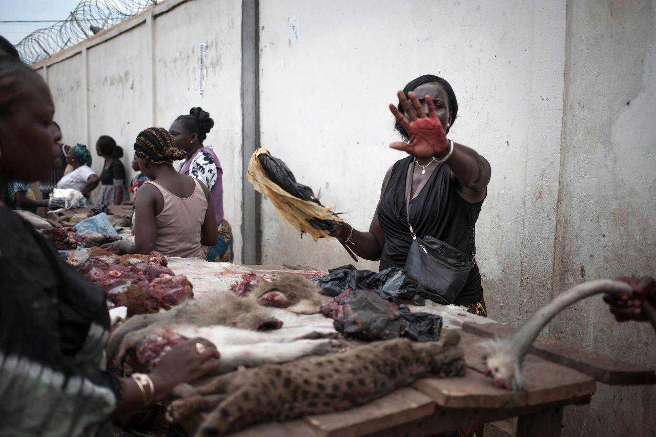 2018年6月2日,中非共和国洛巴耶省一处“丛林肉”市场。该地区是埃博拉病毒暴发的高危地区。