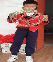 转变集体教学模式,开展小组教学,个别指导,每个小组的小朋友都能根据图示将材料制作成品。急速教学成果的原因有二:一是家长配合带领孩子实地参观烧烤店,也带孩子亲身体验撸串,所以幼儿的经验准备充足;二是教师准备的半成品材料很符合幼儿的年龄特点——孔大,适合幼儿动手操作。而且安全性考虑得很到位,特地在竹签裹上胶棒,防止幼儿扎伤。