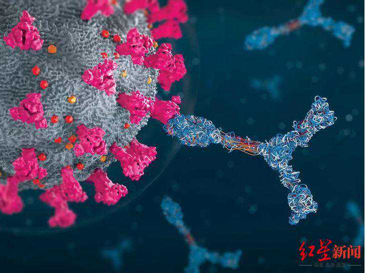↑抗体附着上一个新冠病毒