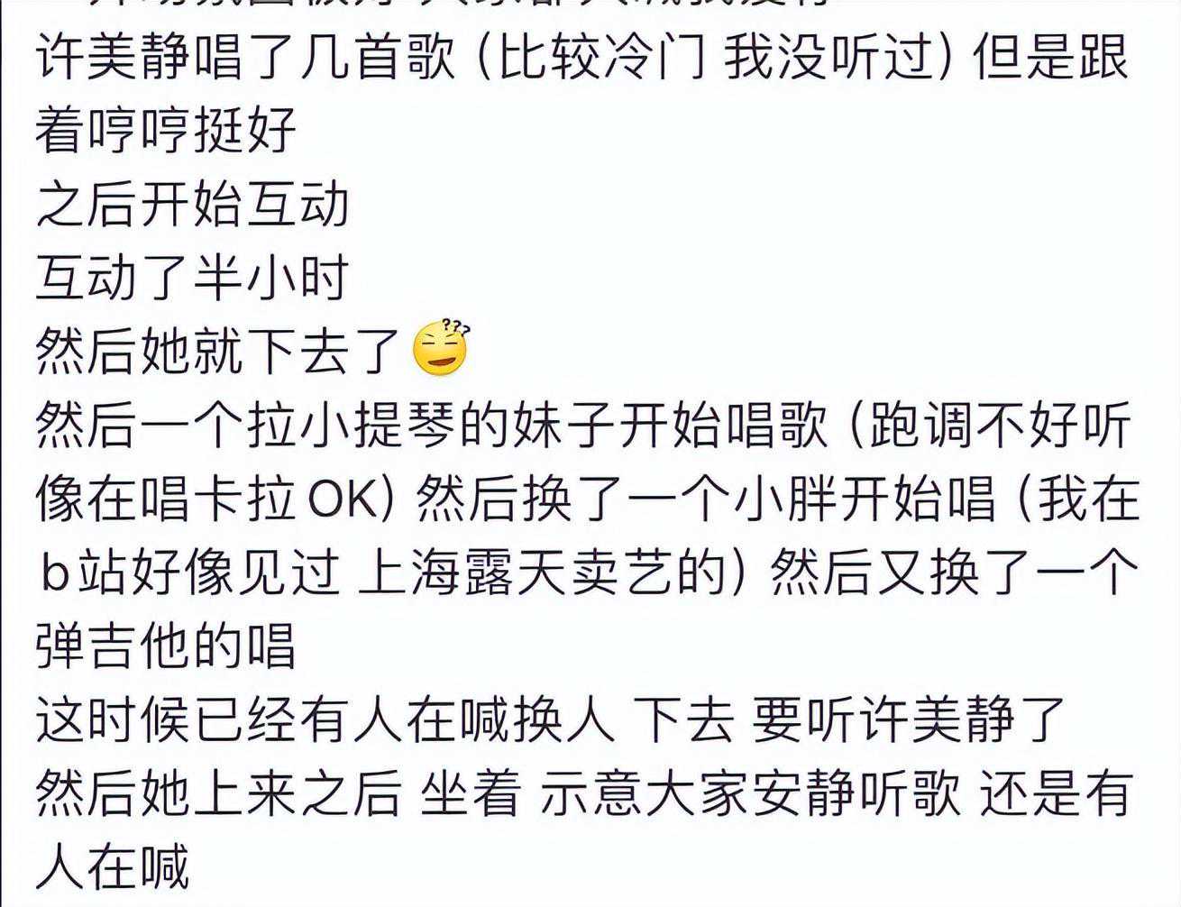 有粉丝不满,直接现场喊退票,许美静的经纪人还说不想唱就走。