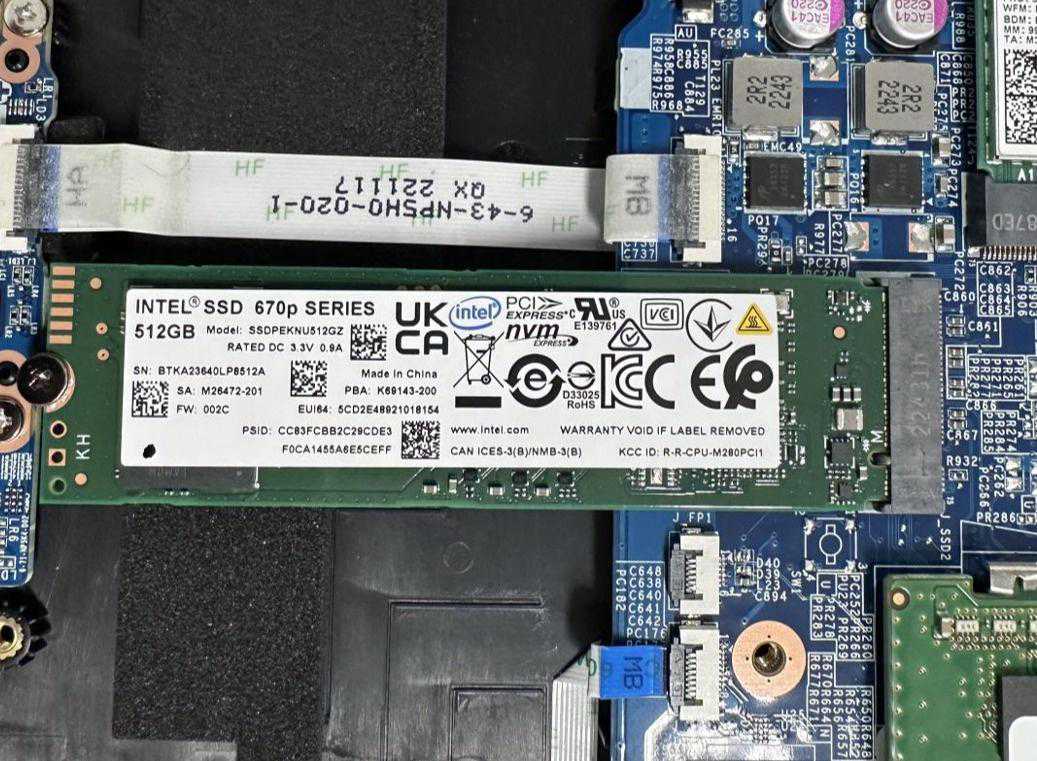 自带的硬盘为intel的670P硬盘,是一块*4的中端硬盘,颗粒为QLC颗粒。值得一提的是,将星X15XS22预留了额外的一个盘位,对速度和容量不满意的话可以自行扩容。