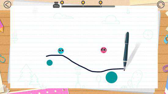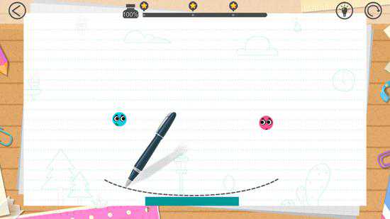 这关为教程关,先画底下的线再画上边的线,根据系统提示画线即可让两个小球相碰过关。可以发挥自己的想象力获得更多的解法。