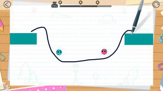 可以试试上图所示的画线方法让两个小球相碰过关。可以发挥自己的想象力获得更多的解法。