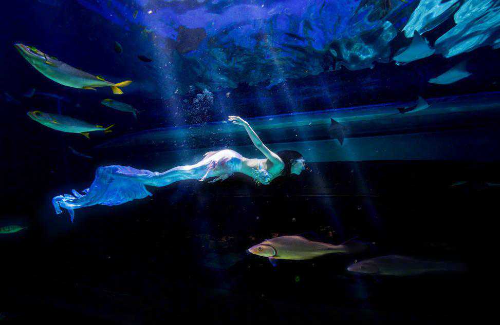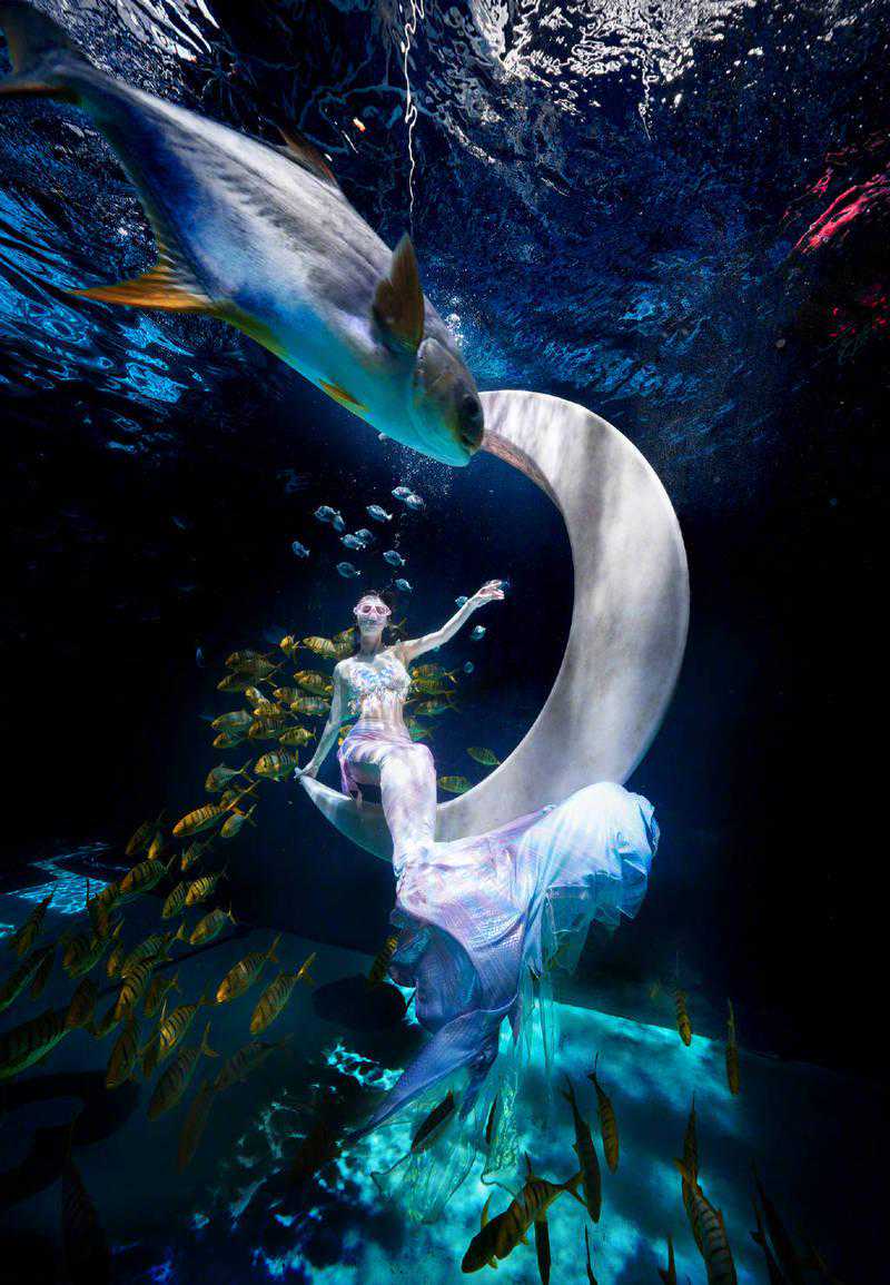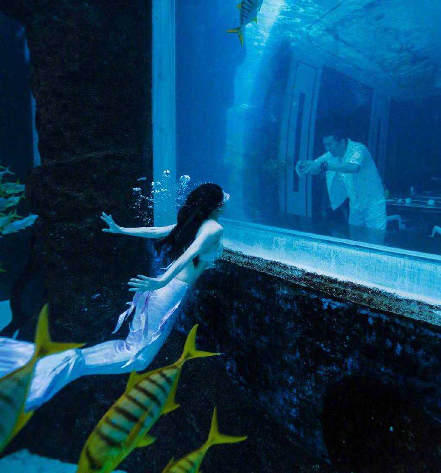 七夕美人鱼装扮潜水与鱼群玩耍!黄圣依展现仙境般的潜水之旅