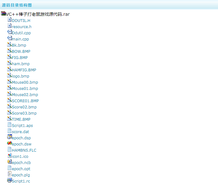 VC++棒子打老鼠游戏源代码,俗称打地鼠,程序可以编译,但运行时候棒子的显示有些问题,也就是程序在处理BMP图像时候虽然会有些不完善,不过整体可以玩,相信大家都知道这款游戏,现在发布源代码供研究。