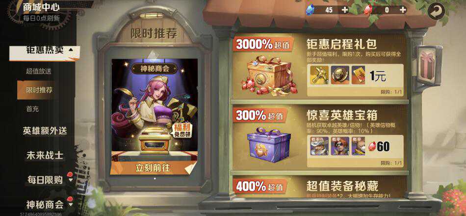有个活动叫做英雄额外送,累计到达298就能获取一个宝箱里面有三位稀世英雄可以随机获得一个,这里就有人问抽到一个菜鸡怎么办?不好意思,这三个角色实力都非常强大,别少看只是1星稀世强度比8星紫色角色还要强,而这次教微氪党就是298的最高性价比玩法.