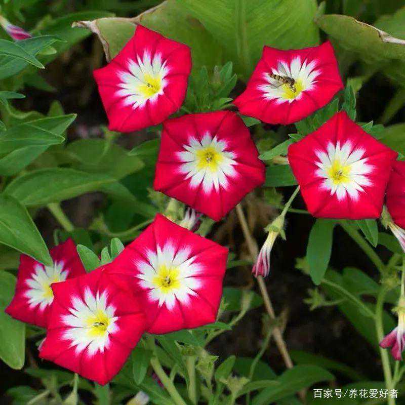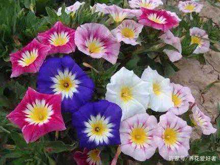 三色旋花又叫三色朝颜,是旋花科旋花属草本植物,它喇叭状的花朵多在早上绽放,花心为黄色,花内有白色的星型区块,加上外圈围绕的蓝色或粉色等,一花三色,可谓天生丽质,娇艳动人。