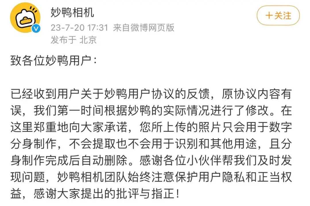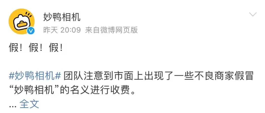 上线不足半个月,妙鸭相机团队已发布2次公告称,市面上出现多款假冒产品,请用户注意甄别。