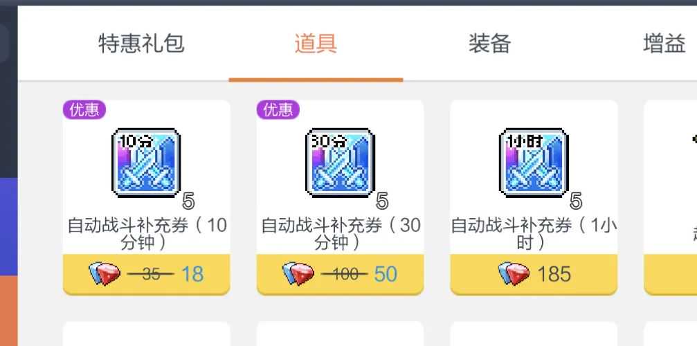 莫慌,如果等不到第二天的0点刷新,商城就专门有卖「自动战斗」的时长补充劵~