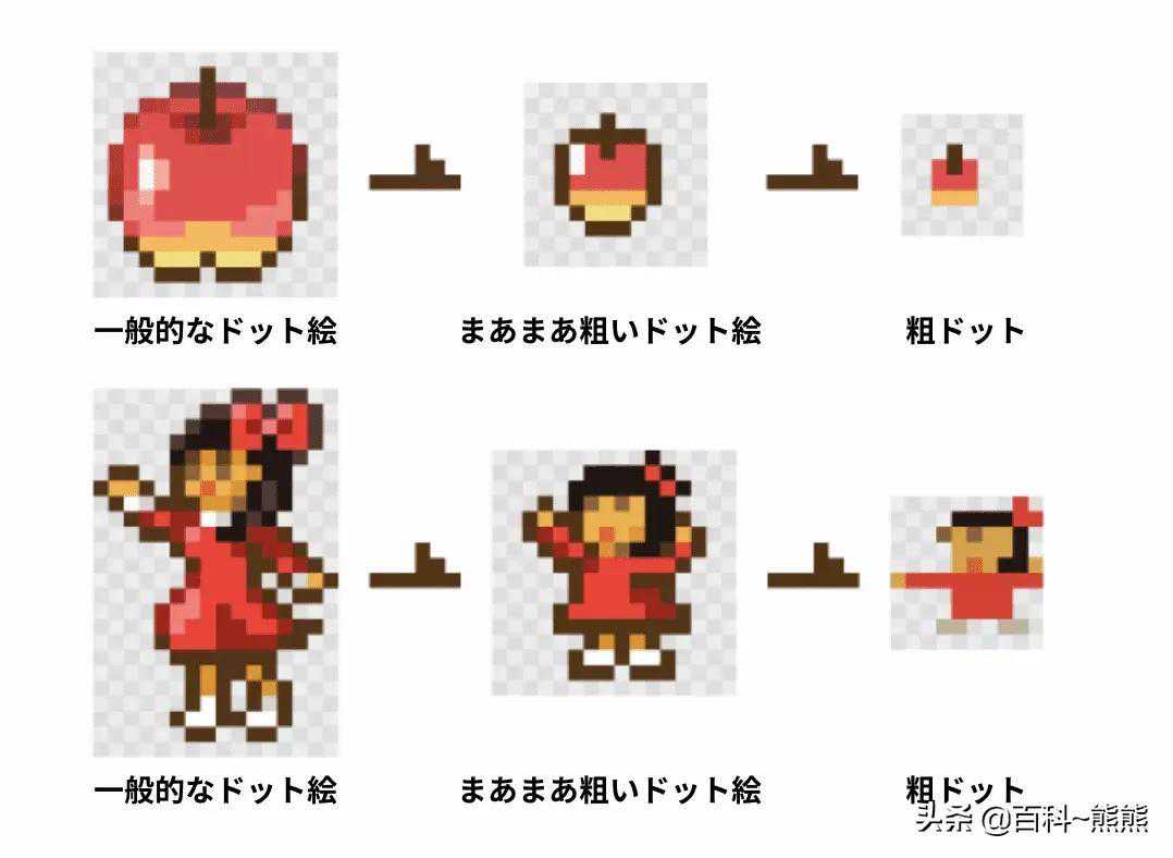 从左到右为像素图到粗点阵图的演变